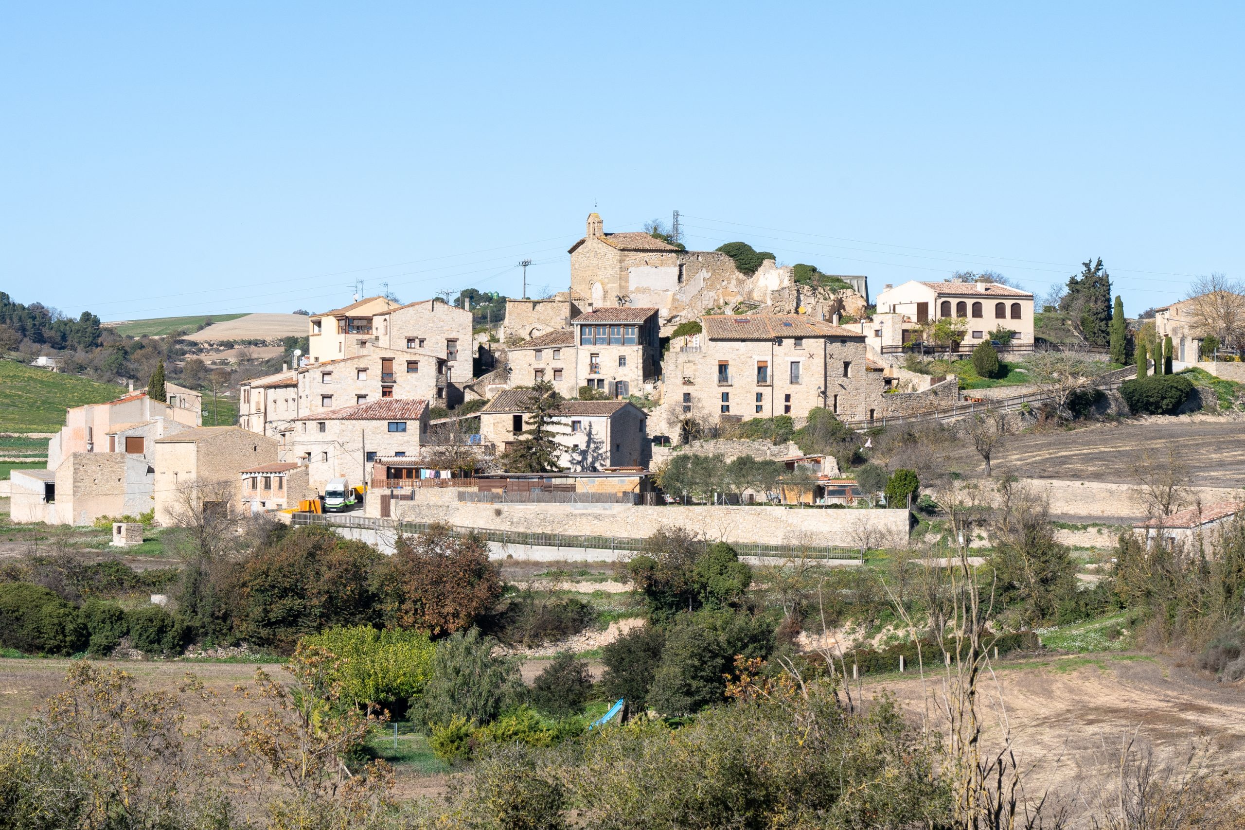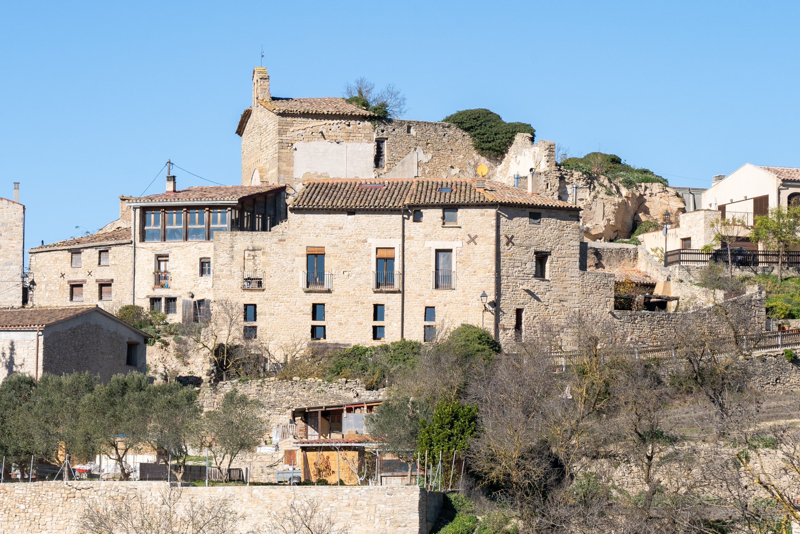 Desde casa vemos desde Aguiló a Santa Coloma de Queralt, el antiguo Castell dels Queralt del que se conservan sus ruinas y girando a ponente vemos S. Miquel y el pueblo de Les Piles. En ese espacio de ponente podemos admirar los hermosos cielos que se dan en la Conca.